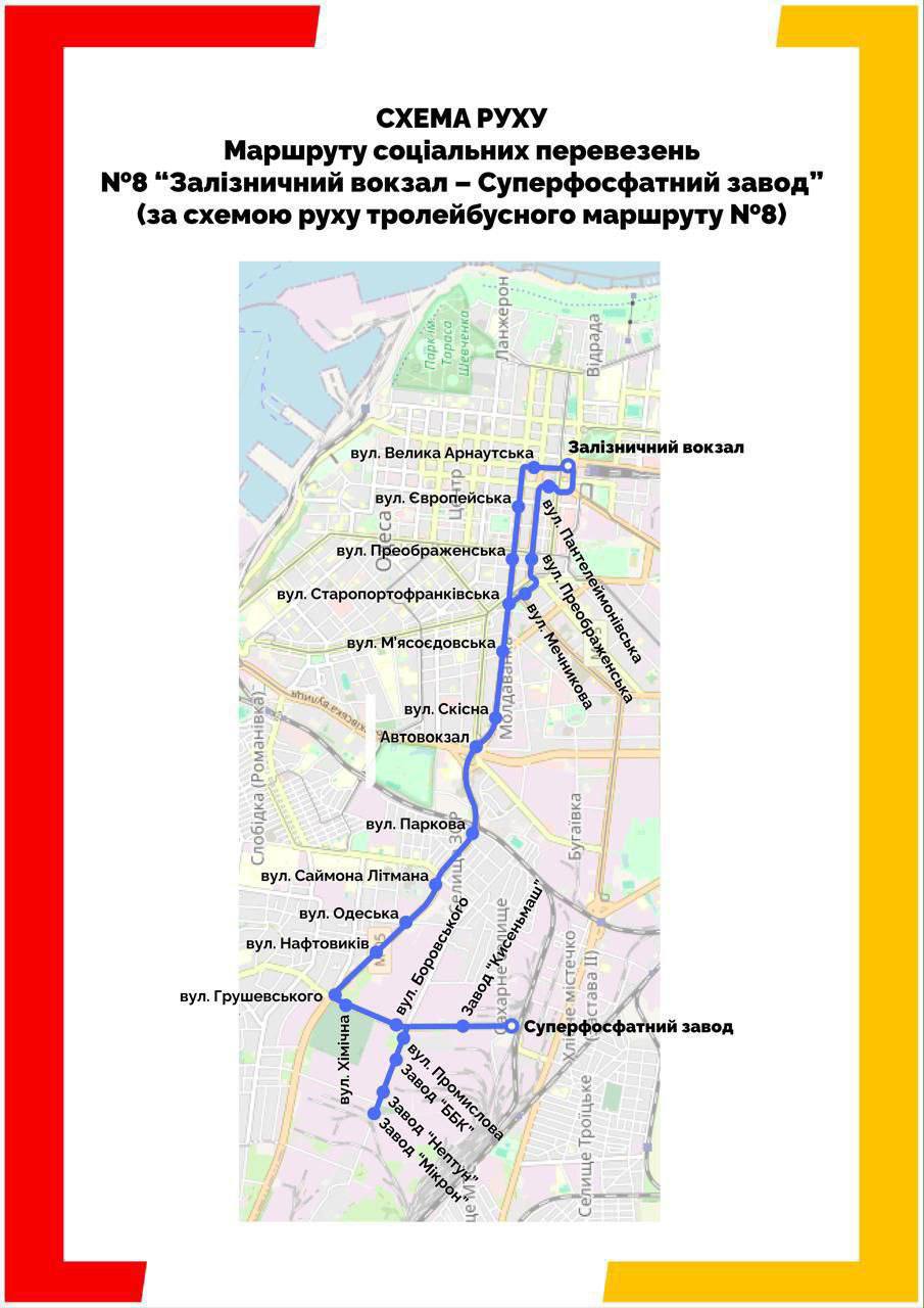 Маршрут №8 "Суперфосфатний завод – Залізничний вокзал" (дублює тролейбус №8)