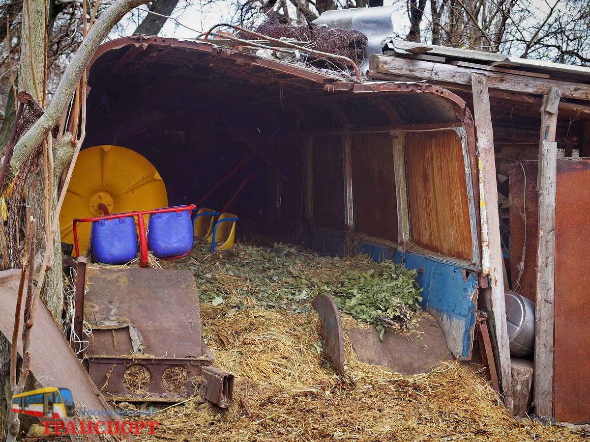 Тролейбус був списаний з пасажирської роботи вже 1 лютого 1976-го, пропрацювавши лише трохи менше 10 років. Після цього його переобладнали у тір. А згодом він опинився на господарчому дворі зоопарку (прохання не плутати з депо на вулиці Зоопарковій) - і став спочатку сараєм, а потім, коли у нього розвалилася задня частина - складом для сіна.