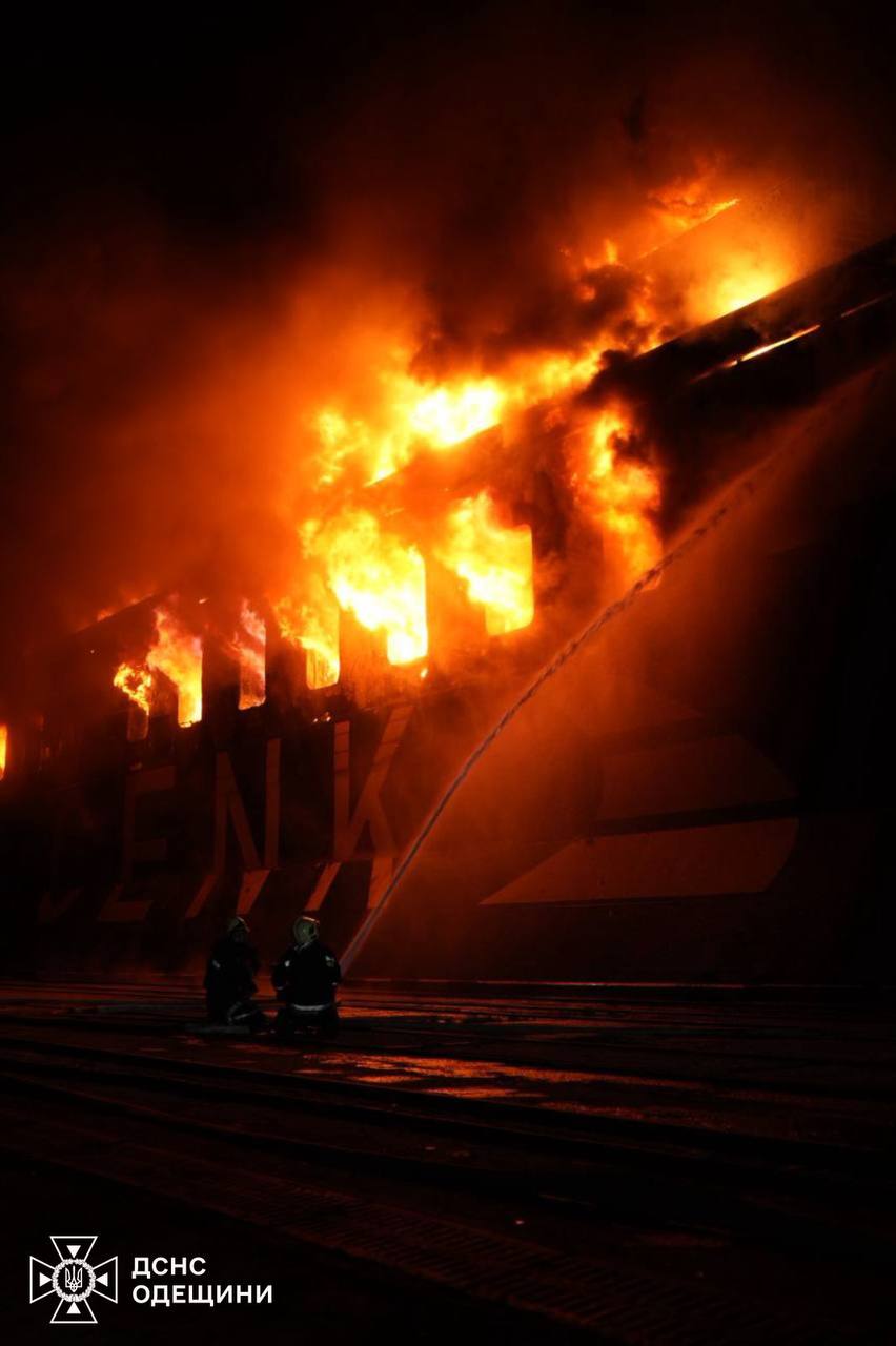 За попередньою інформацією, після удару балістикою в порту Чорноморська горить цивільне вантажне судно турецької компанії Cenk RORO, видно стовп диму.