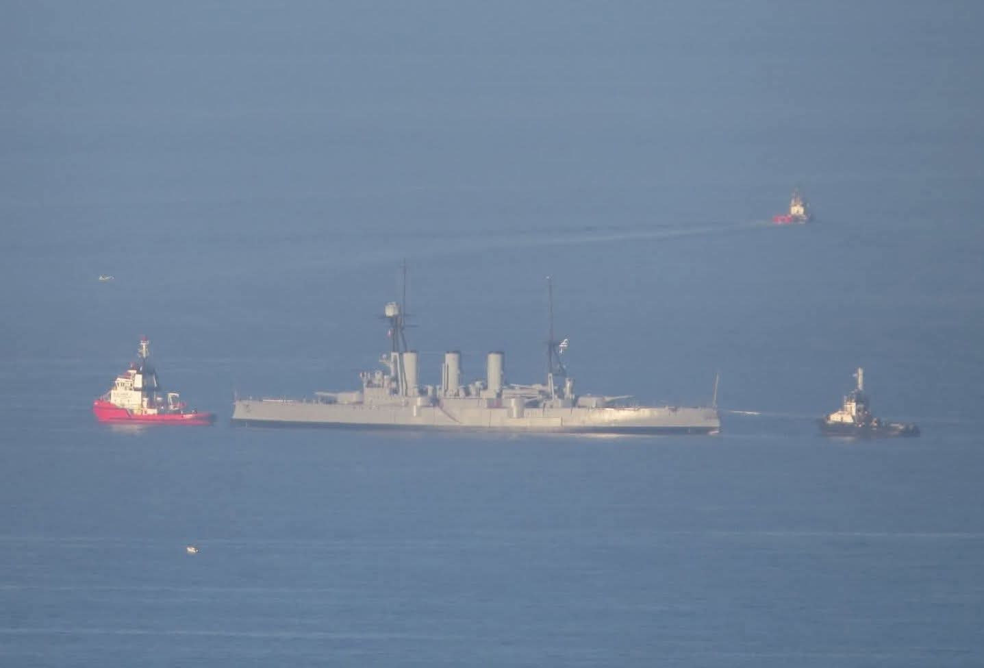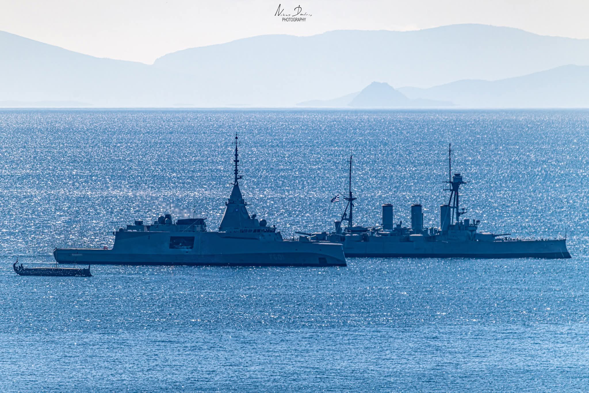 Особливої урочистості моменту додала зустріч нового флагмана з «живою легендою» грецького флоту — броненосним крейсером Georgios Averoff. Крейсер-музей, який зазвичай перебуває на вічній стоянці в Палео-Фалірон, спеціально вийшов у море, щоб привітати свого наступника. Цей символічний жест підкреслив амбіції Греції знову стати провідною морською потугою у Східному Середземномор'ї.