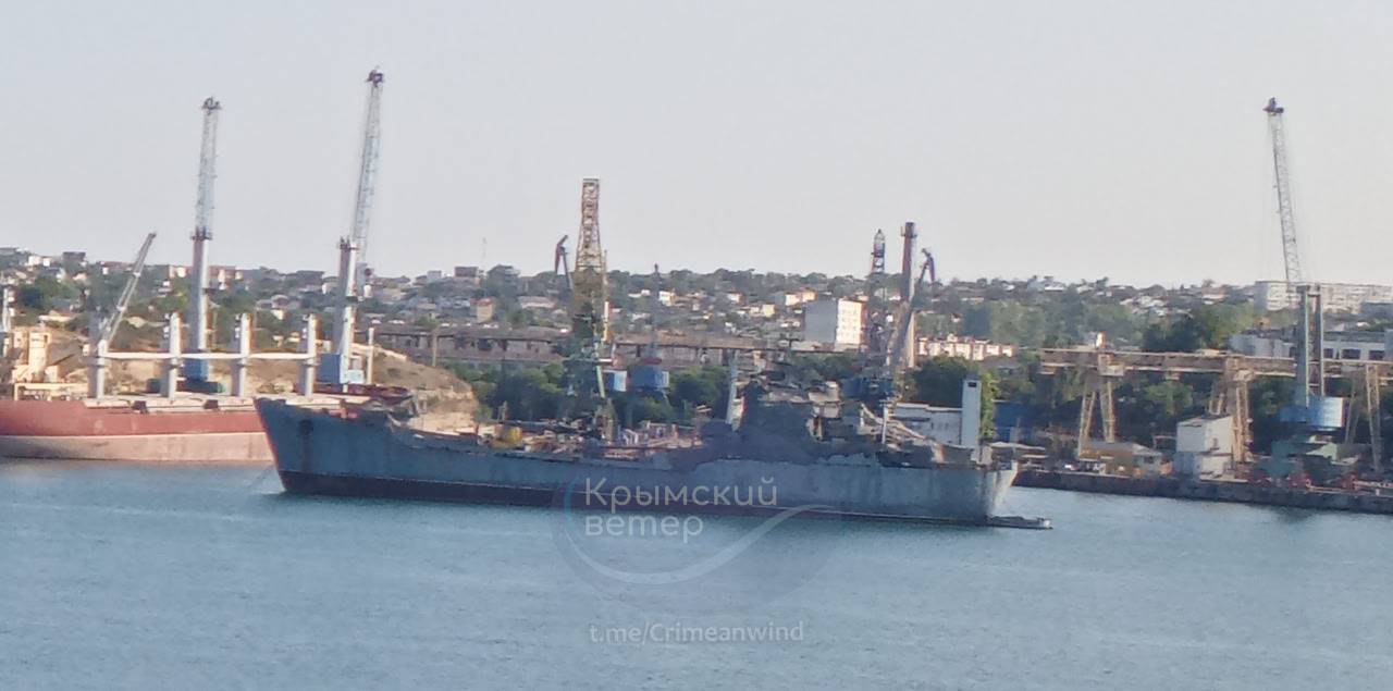 Окупаційне російське командування продовжує маневрування пошкодженим великим десантним кораблем (ВДК) проєкту 1171 «Тапір» у акваторії тимчасово окупованого Севастополя. Росіяни намагаються замаскувати наслідки успішних ударів Сил оборони України.