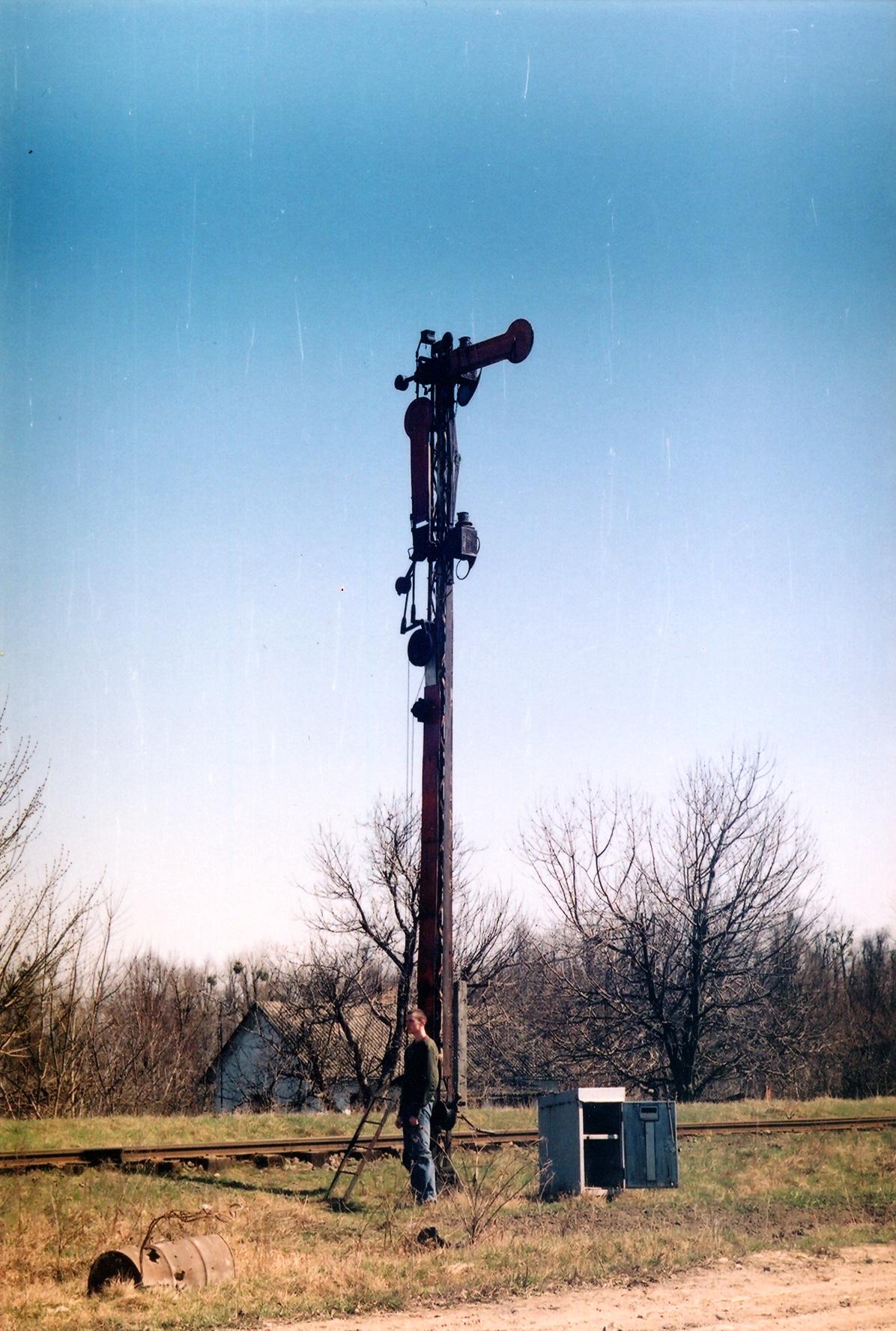 А на цій світлині — розмір того самого семафора поряд зі мною (вже тоді я був парубком під два метри :)). На жаль, зараз його вже немає.